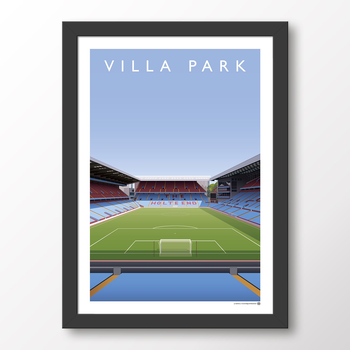 Poster of Villa Park, the home of Aston Villa Football Club, showing the Doug Ellis Stand, Holte End and Trinity Road Stand