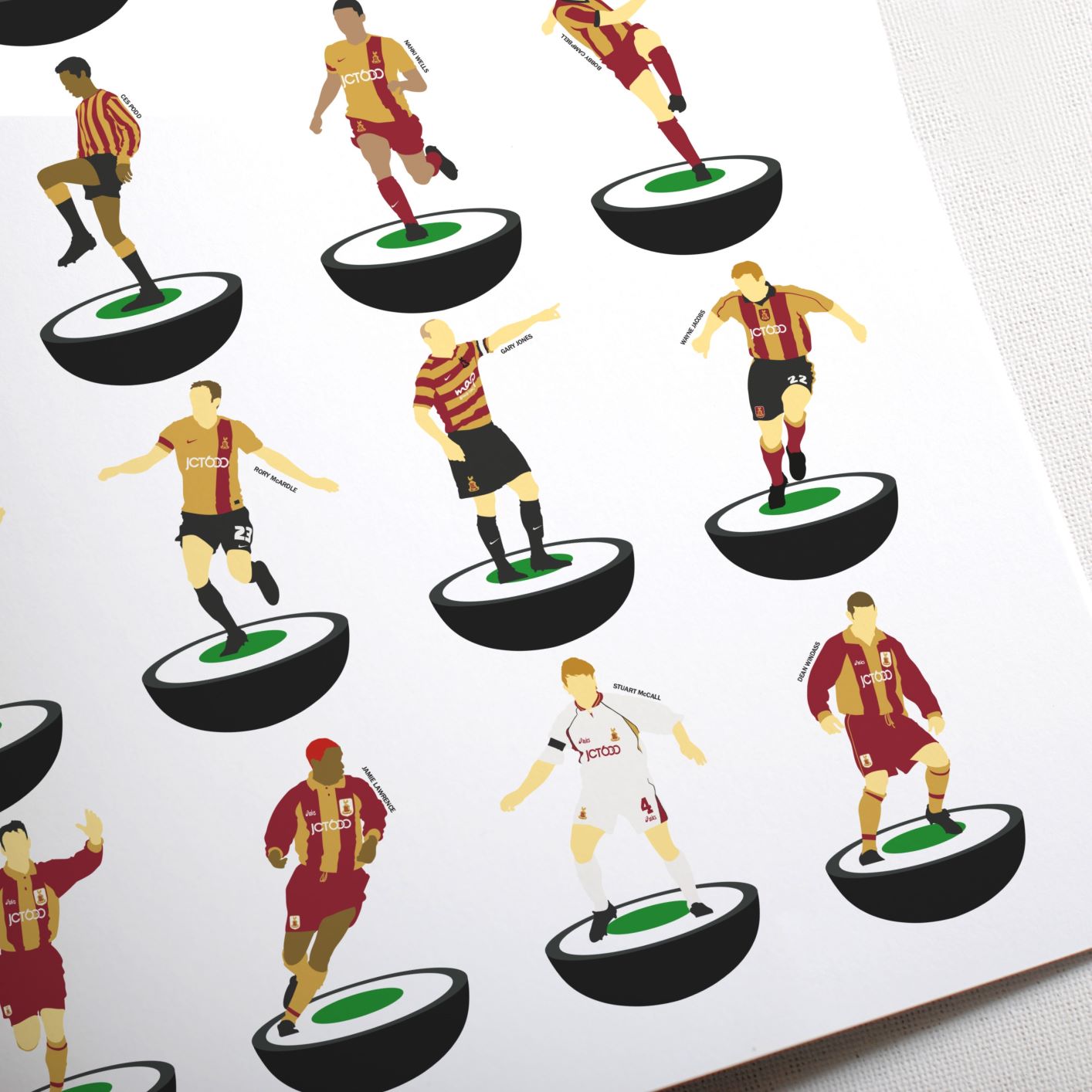 It features artwork inspired by past and present Bradford players in the Subbuteo style. Players like Dean Windass, Stuart McCall, James Hanson and Gary Jones all feature.
