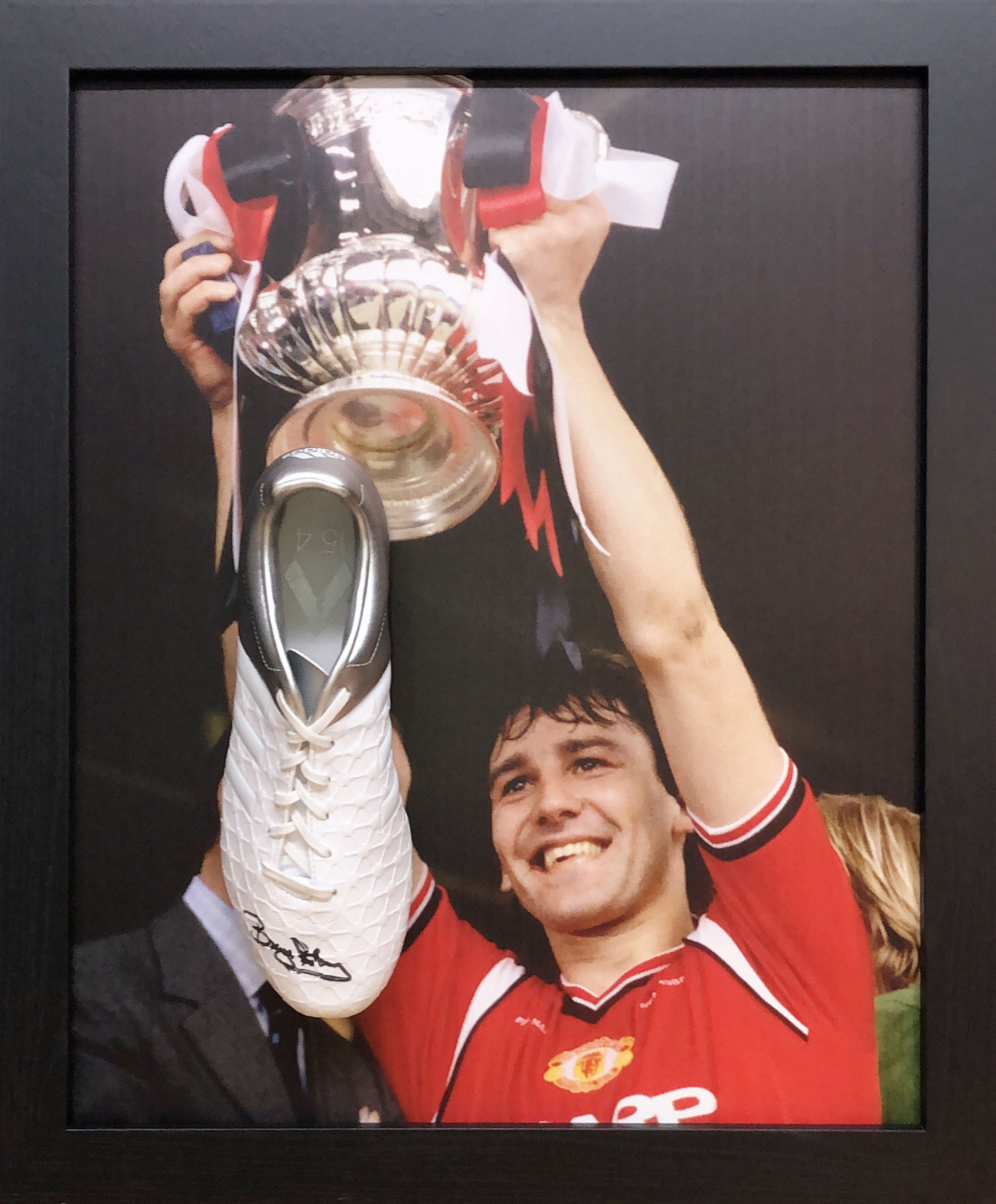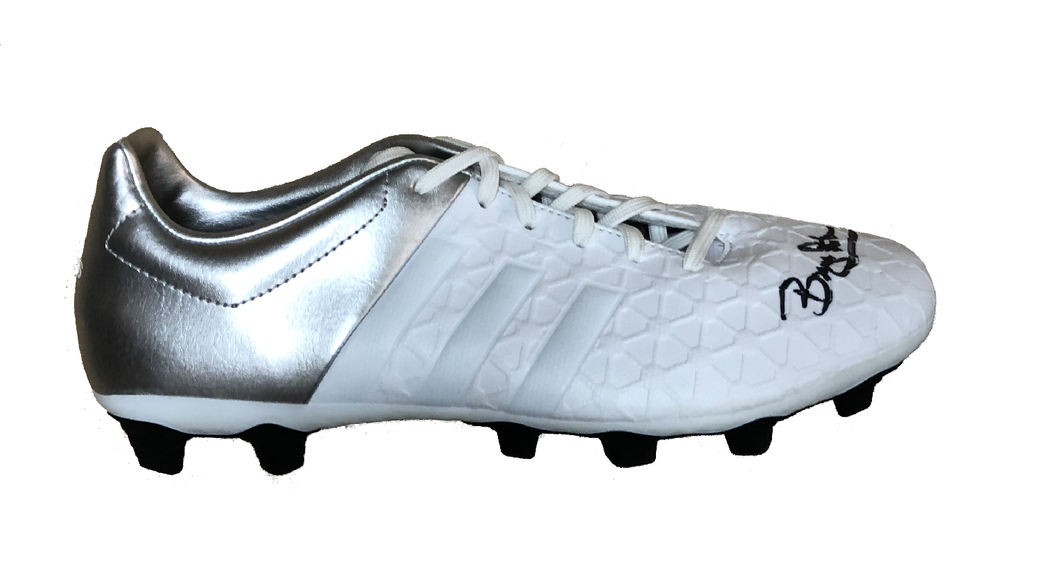This is an Adidas football boot signed by United legend Bryan Robson “Captain Marvel”. The boot was personally signed by Bryan in a signing session carried out and attended by Allstarsignings in Manchester on 17th September 2016.
