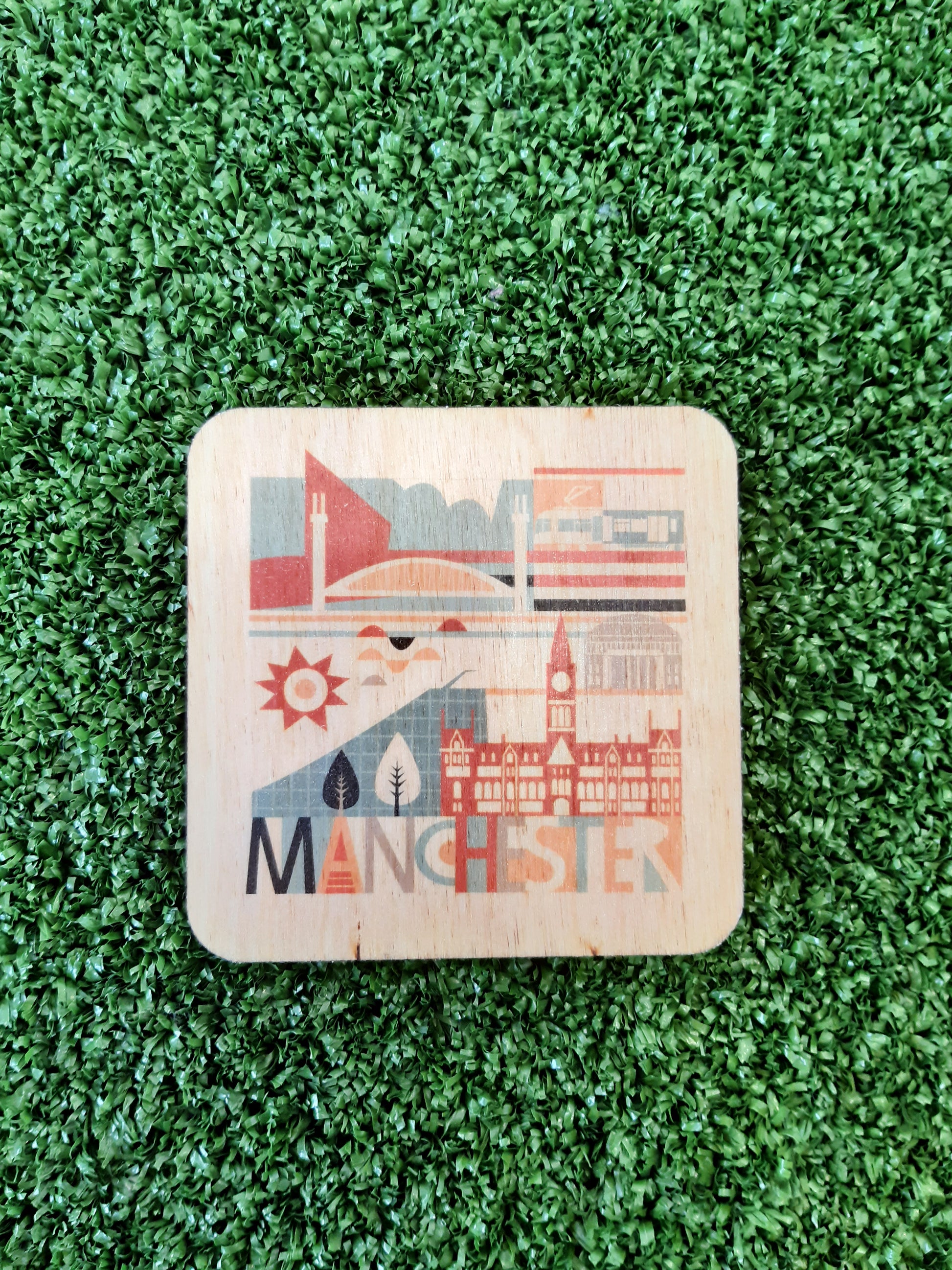 City Scape Manchester Wooden Coasters