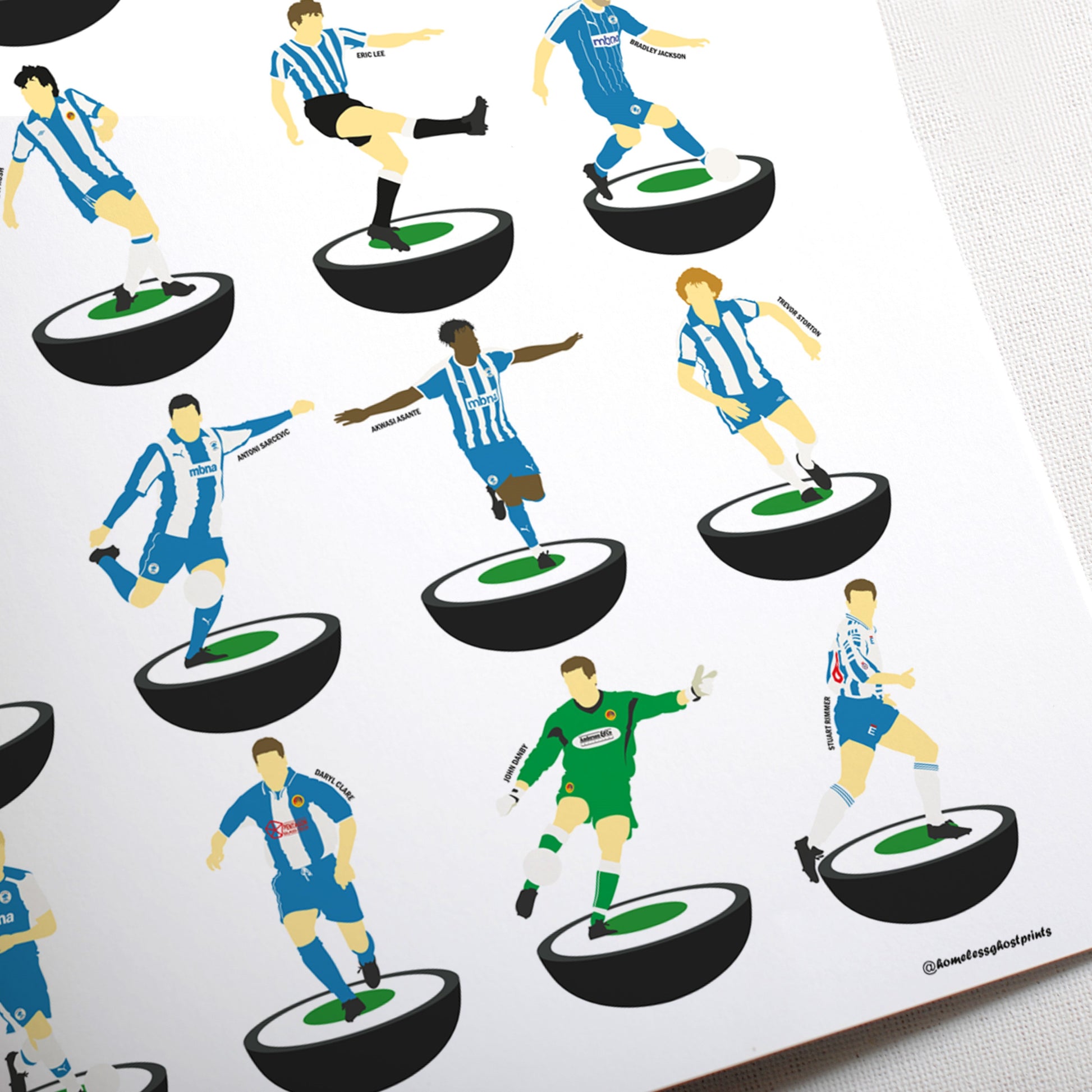 It features artwork inspired by past and present Chester City players in the Subbuteo style. Players like Ian Rush, Gary Bennett, Ray Gill and Stuart Rimmer all feature.