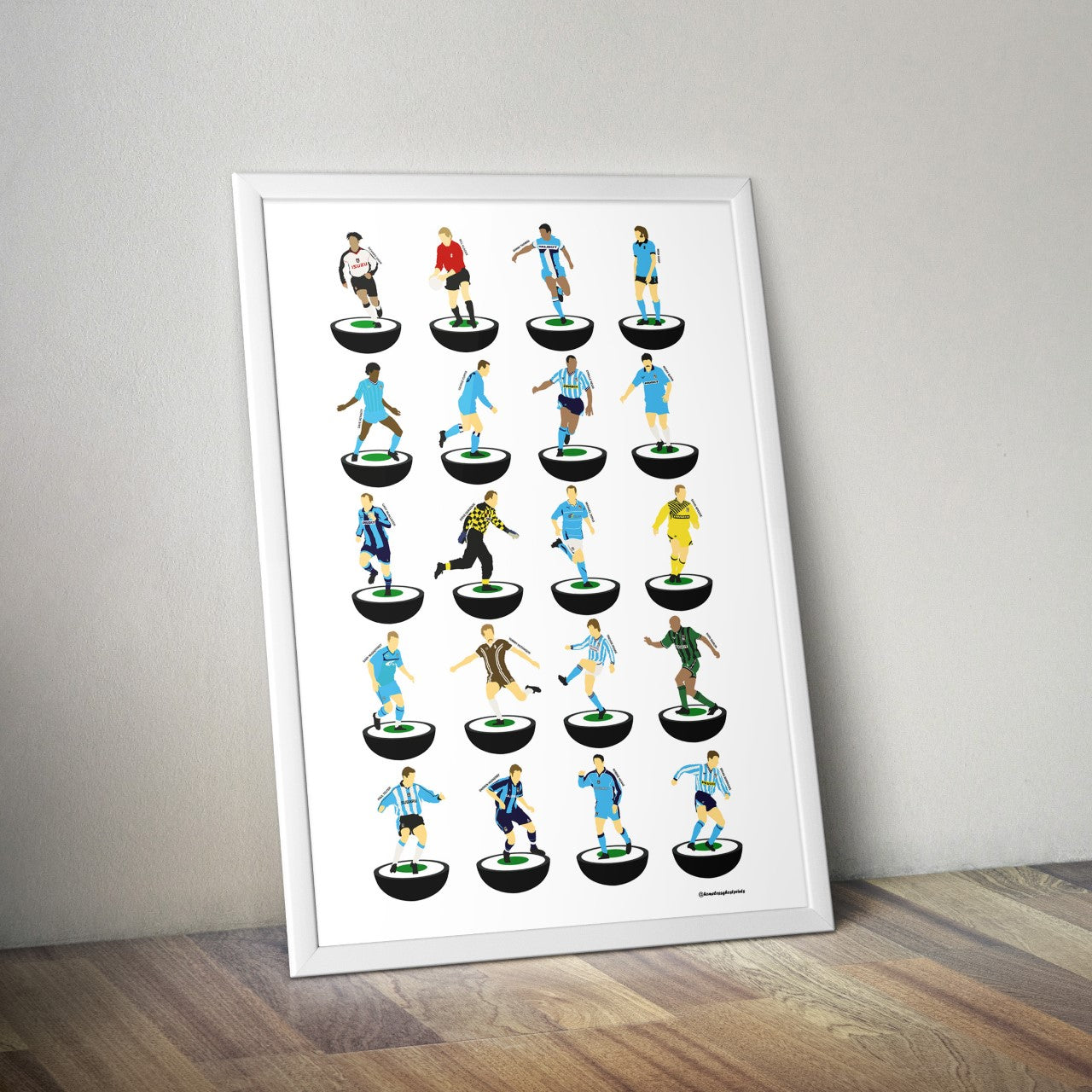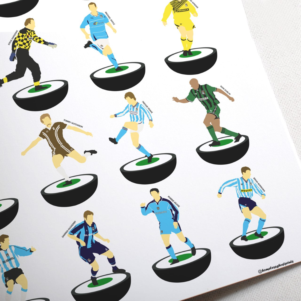 It features artwork inspired by past and present Coventry City players in the Subbuteo style.
