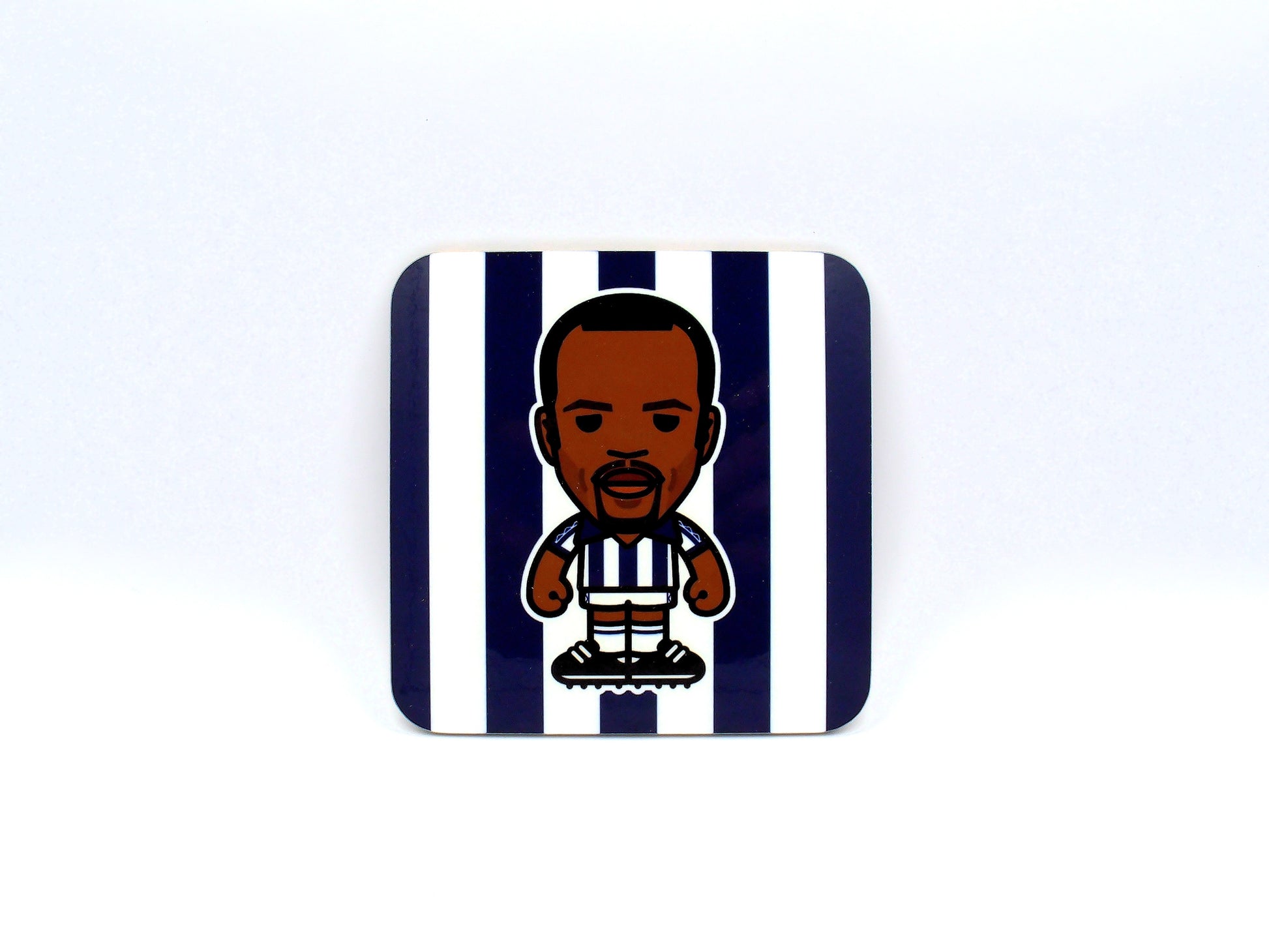 Display your West Brom passion with this distinctive coaster featuring Cyrille Regis. Manufactured in the UK by Glove and Whistle, this 9cm x 9cm collectible merges authentic design with everyday practicality. Built from sturdy hardboard and protected by a premium glossy finish, it withstands regular use while maintaining its vibrant appearance. Perfect for devoted Albion supporters seeking meaningful décor, this officially licensed design transforms any table into a statement of loyalty—an exceptional gift choice for those who truly live and breathe their football.