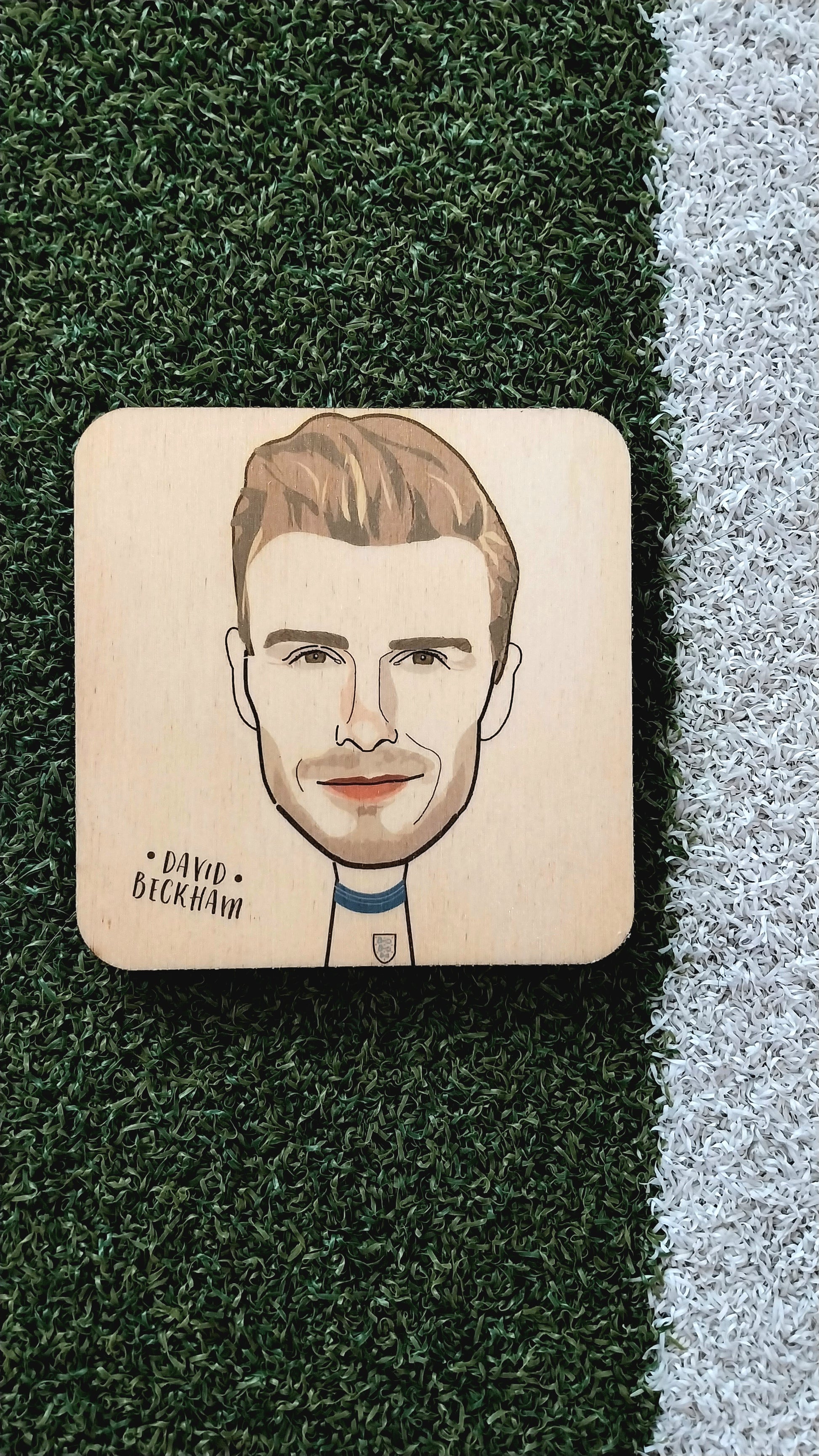 Fabulous illustrative wooden coaster capturing the likeness and spirit of David Beckham.