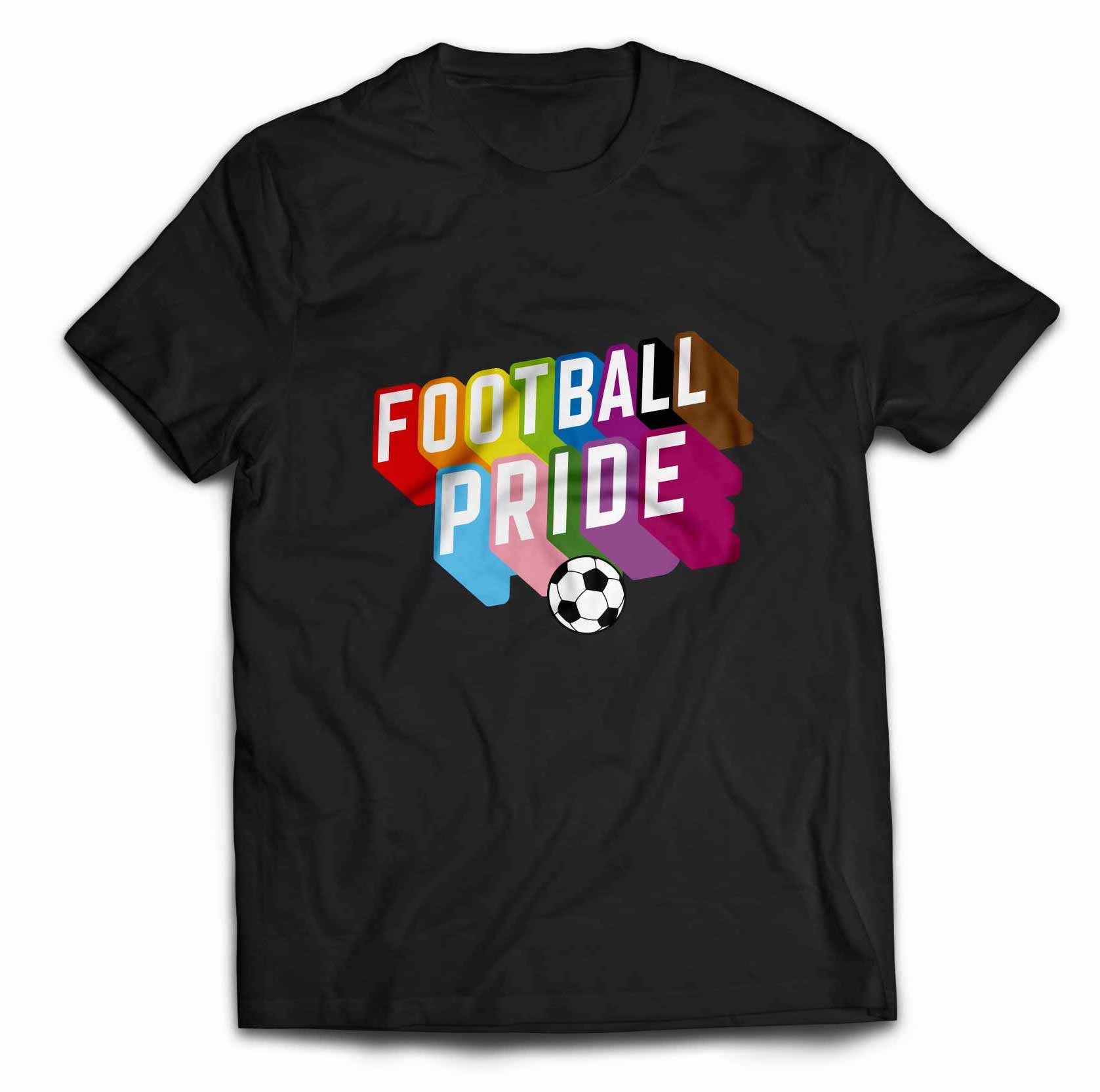 This 100% cotton T-shirt is the winning look for any football fan. Boasting an eye-catching 'Football Pride' logo and the vibrant colours of the LGBTQIA+ flag, this black tee will make you the centre of attention as you cheer on your team! Go team!