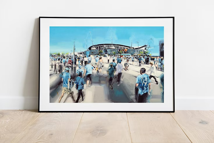Experience the charm of "Going to Old Etihad" with this limited edition print. Each piece is hand-signed, titled, and stamped, printed on luxurious 200gsm silk paper for a refined finish. Sized at A3 (42cm x 29.7cm), it’s perfect for showcasing your passion for football while adding a touch of elegance to any room. With a limited run, this collectible print is a must-have for enthusiasts seeking exclusive artwork that stands out.