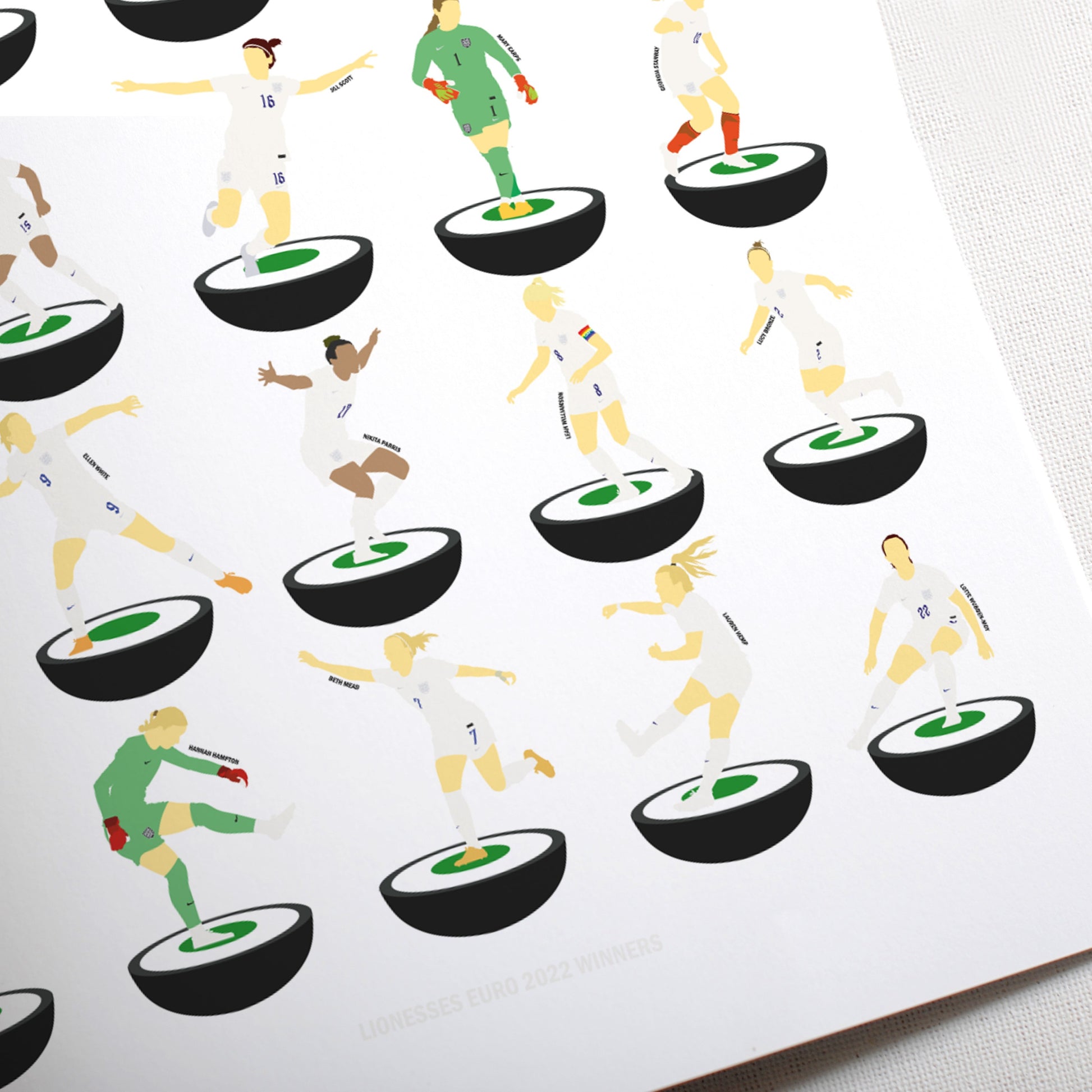An original poster by HomelessGhostPrints. The print features the full England lionesses Championship squad for Euro 2022.