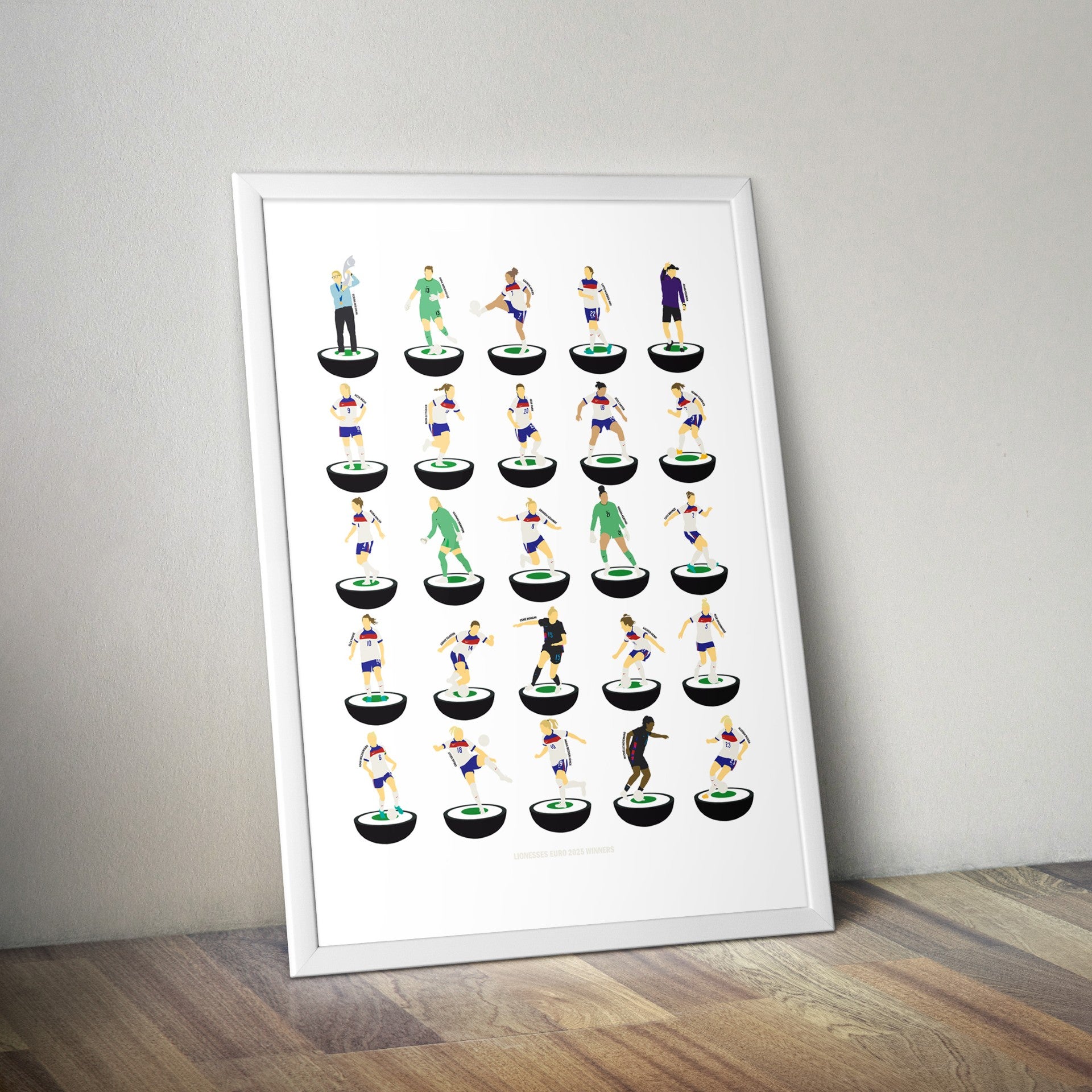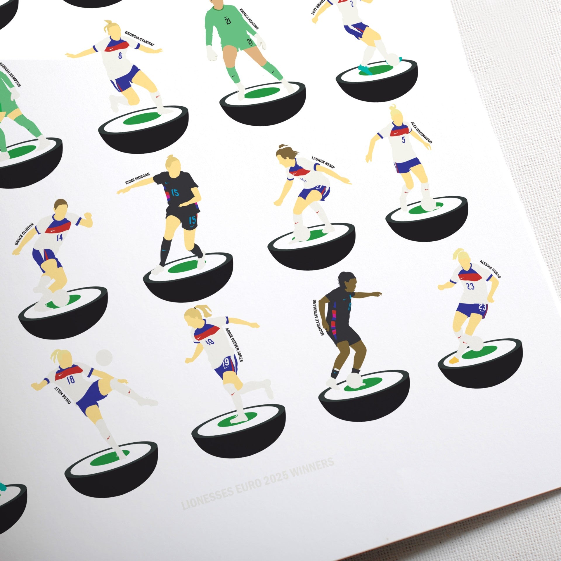 Printed on high quality 180gsm paperstock. Players featured include Georgia Stanway, Lauren Hemp, Ella Toone, Beth Mead, Leah Williamson and Lucy Bronze.