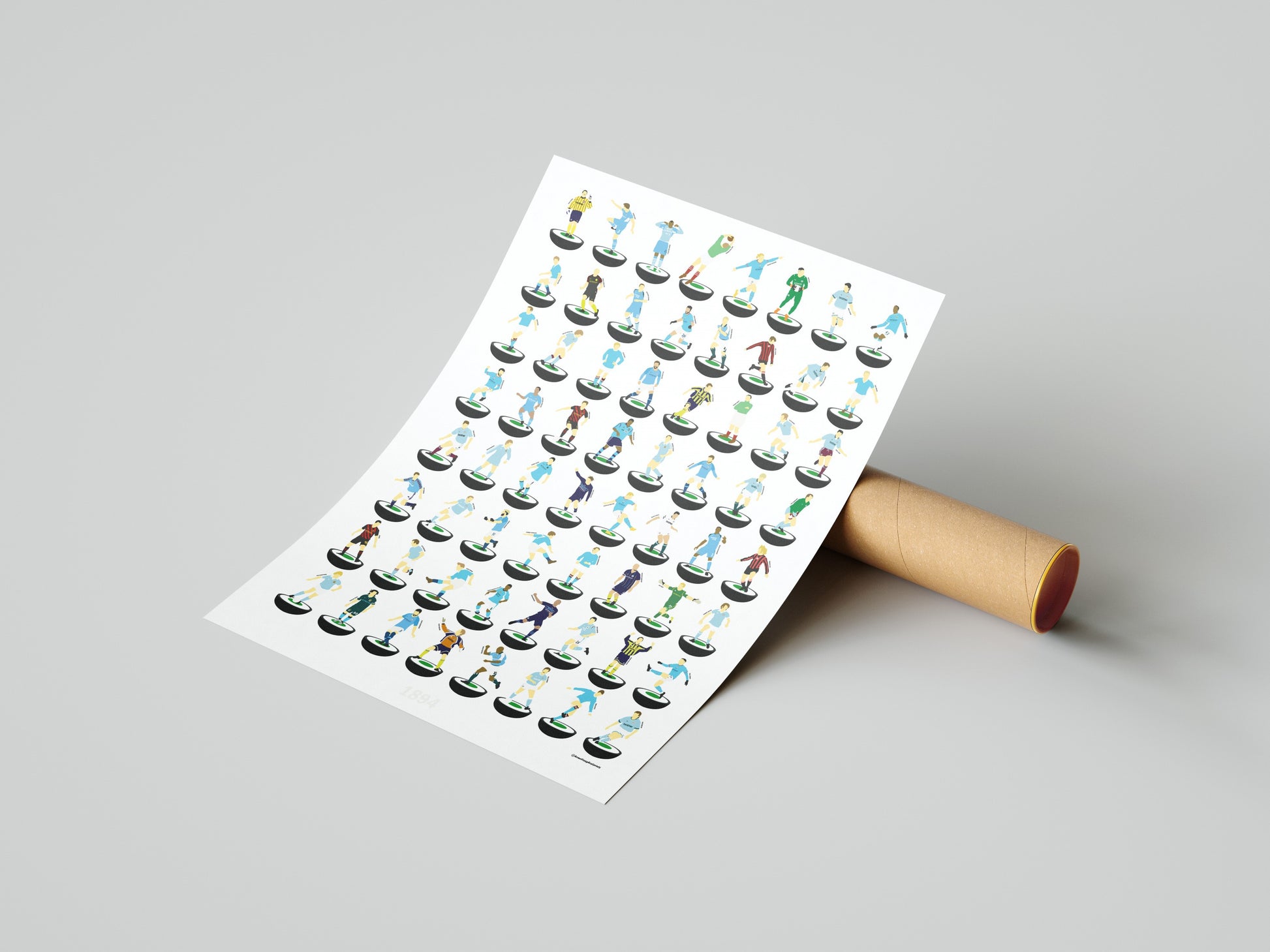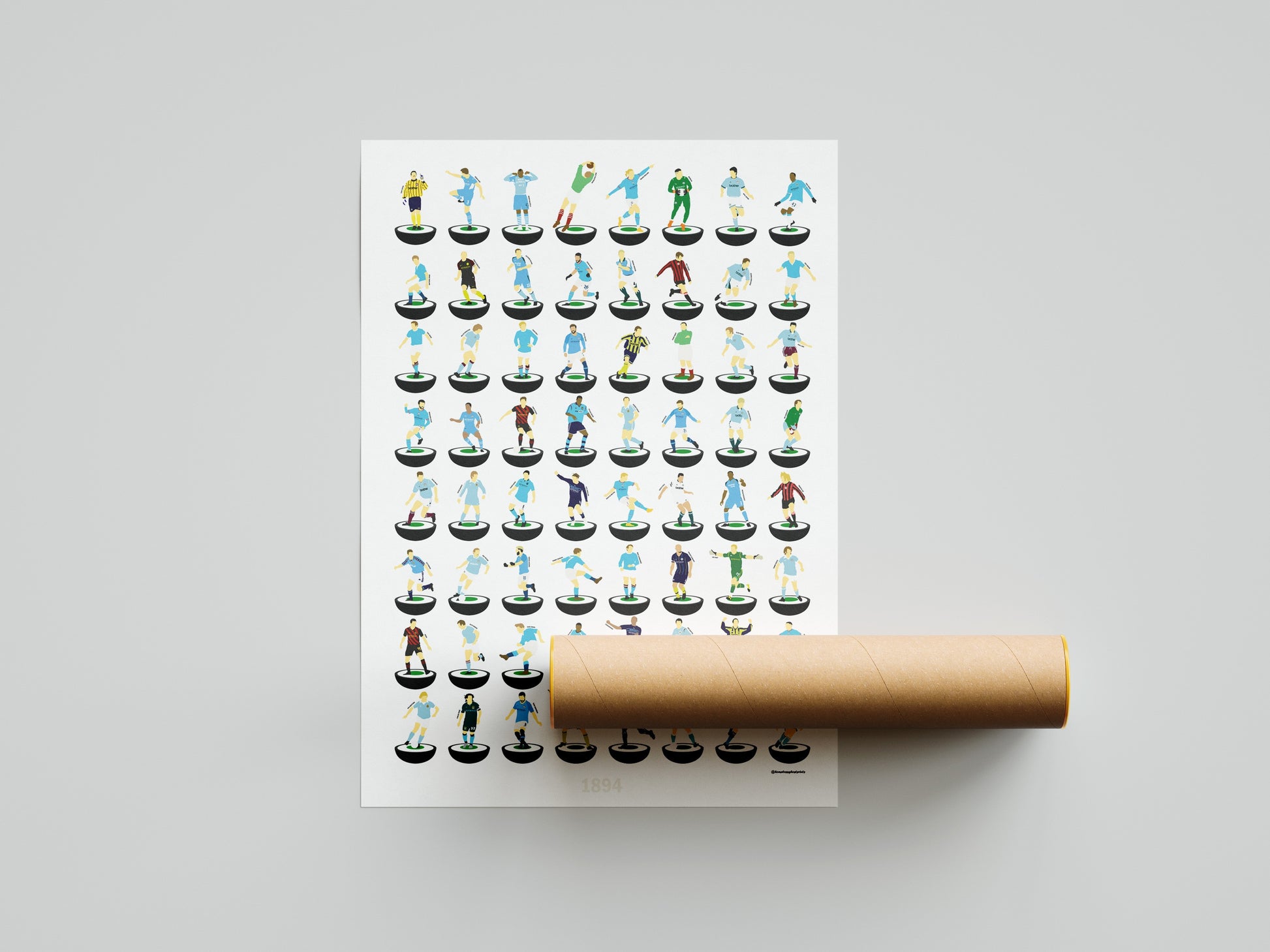 64 players feature in total ranging from Colin Bell, Shaun Goater, Francis Lee, Mike Summerbee, David White, Sergio Aguero and Vincent Kompany. Many players that haven’t featured on a print before.
