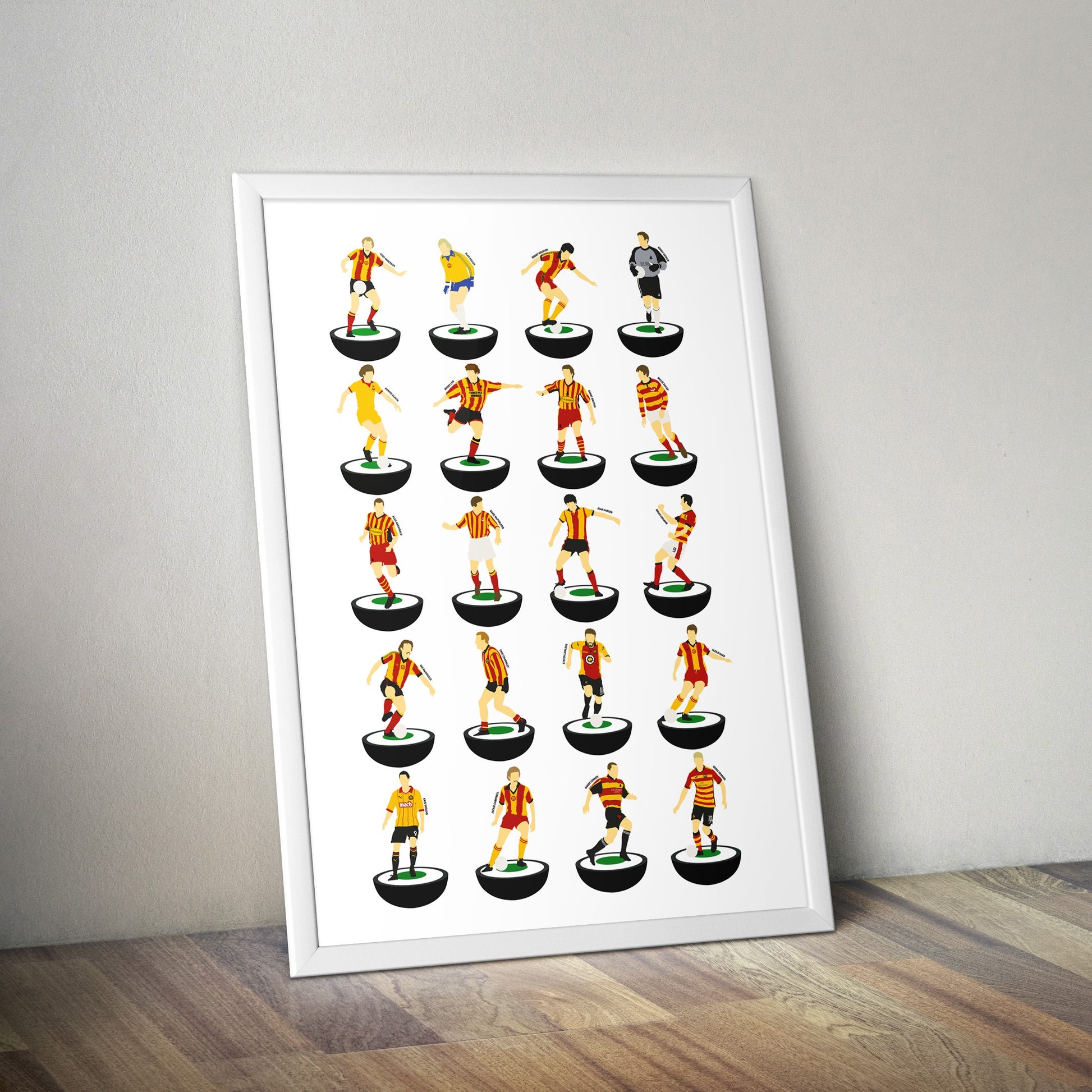 It features artwork inspired by past and present Partick Thistle players in the Subbuteo style.