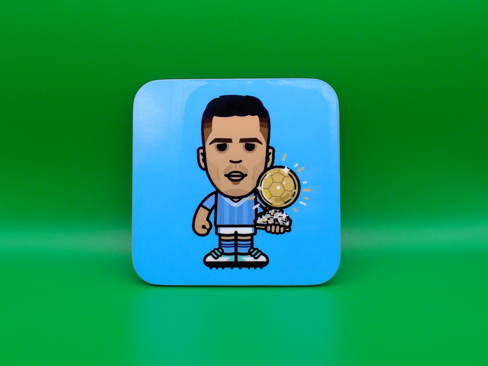 Display your Man City passion with this distinctive coaster featuring Rodri. Manufactured in the UK by Glove and Whistle, this 9cm x 9cm collectible merges authentic design with everyday practicality. Built from sturdy hardboard and protected by a premium glossy finish, it withstands regular use while maintaining its vibrant appearance. Perfect for devoted Cityzens supporters seeking meaningful décor, this officially licensed design transforms any table into a statement of loyalty—an exceptional gift choice for those who truly live and breathe their football.