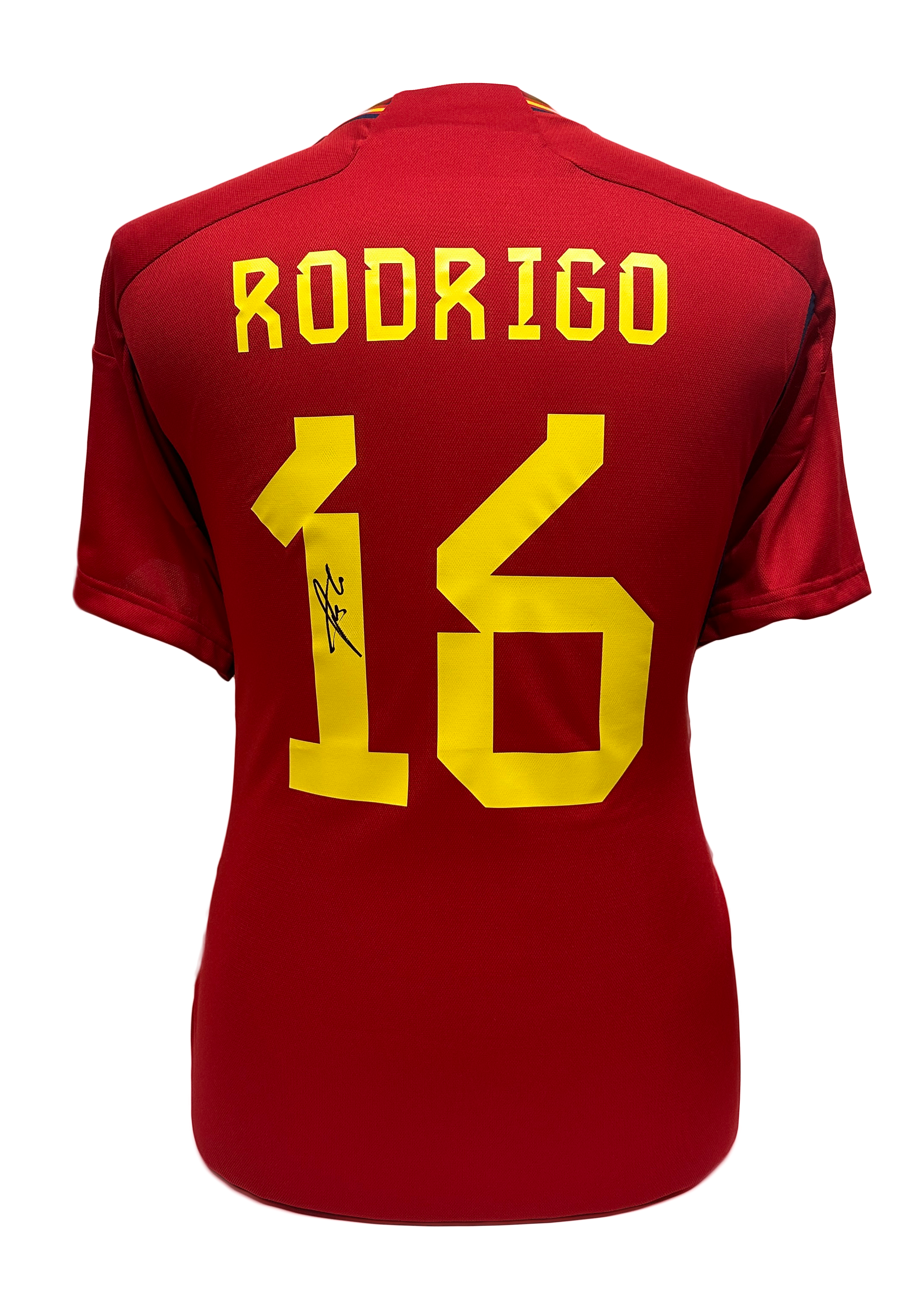 Here is a Rodri 2022/23 Spain Home Shirt, personally signed by the man himself during a private signing in Manchester on October 22nd, 2023.