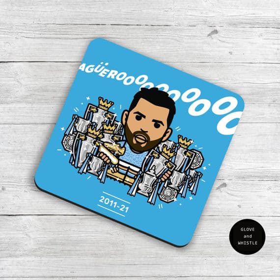 An exclusive coaster featuring Manchester City's top goal scorer and legend Sergio Aguero.