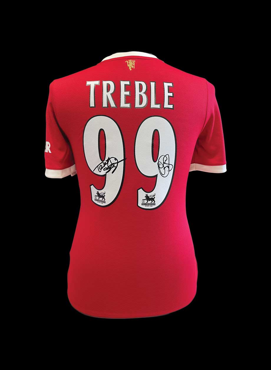 Solskjaer & Sheringham Dual Signed Manchester United Treble 1999 Shirt