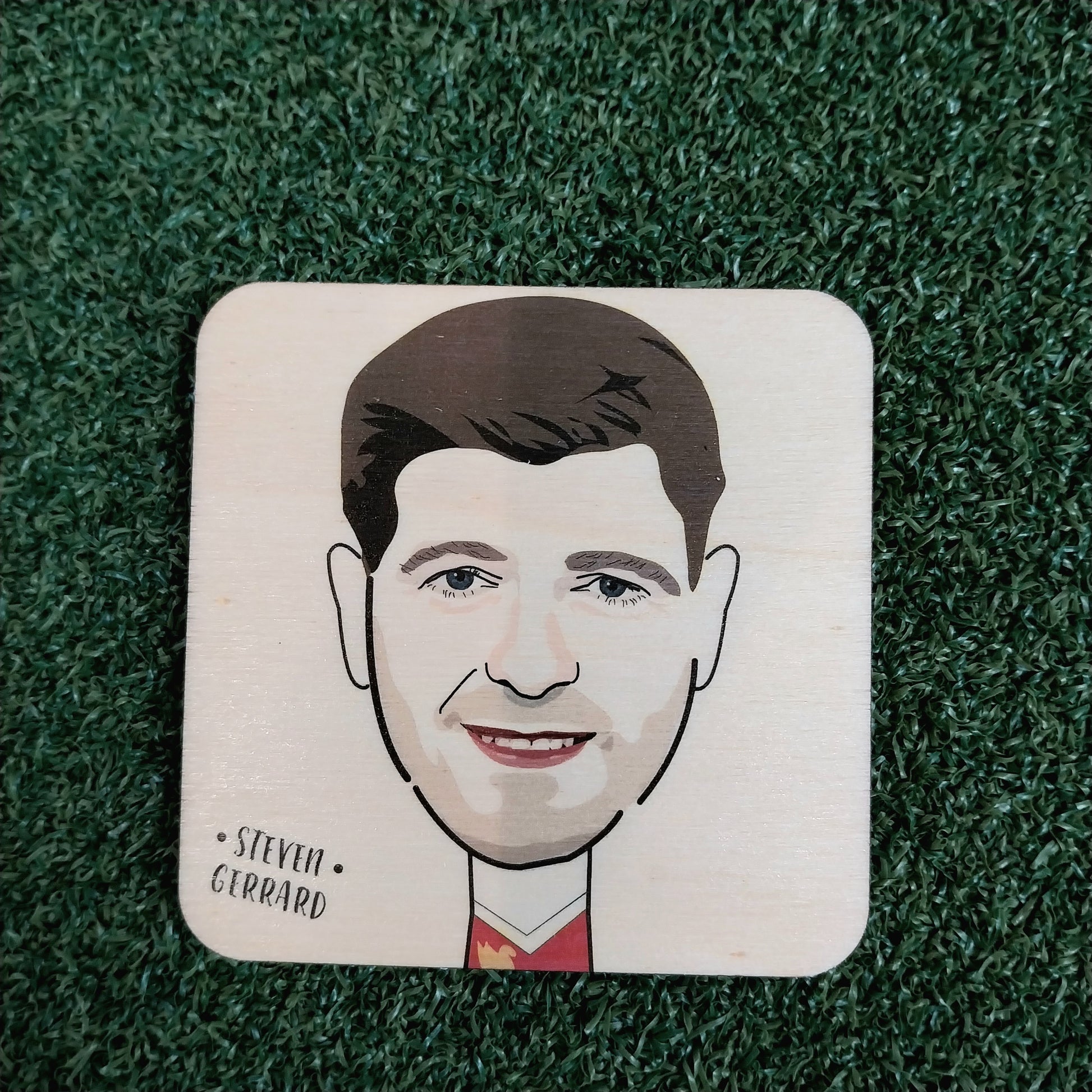 Fabulous illustrative wooden coaster capturing the likeness and spirit of Steven Gerrard.