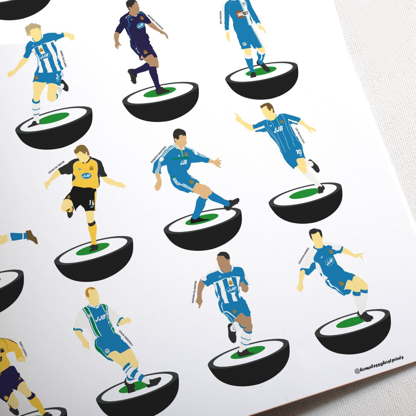 It features artwork inspired by past and present Wigan Athletic players in the Subbuteo style. Players like Andy Liddell, Antonio Valencia, Arjan De Zeeuw and Jimmy Bullard all feature.